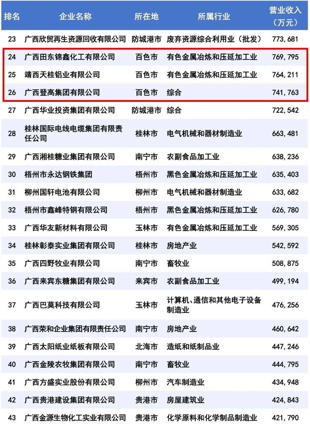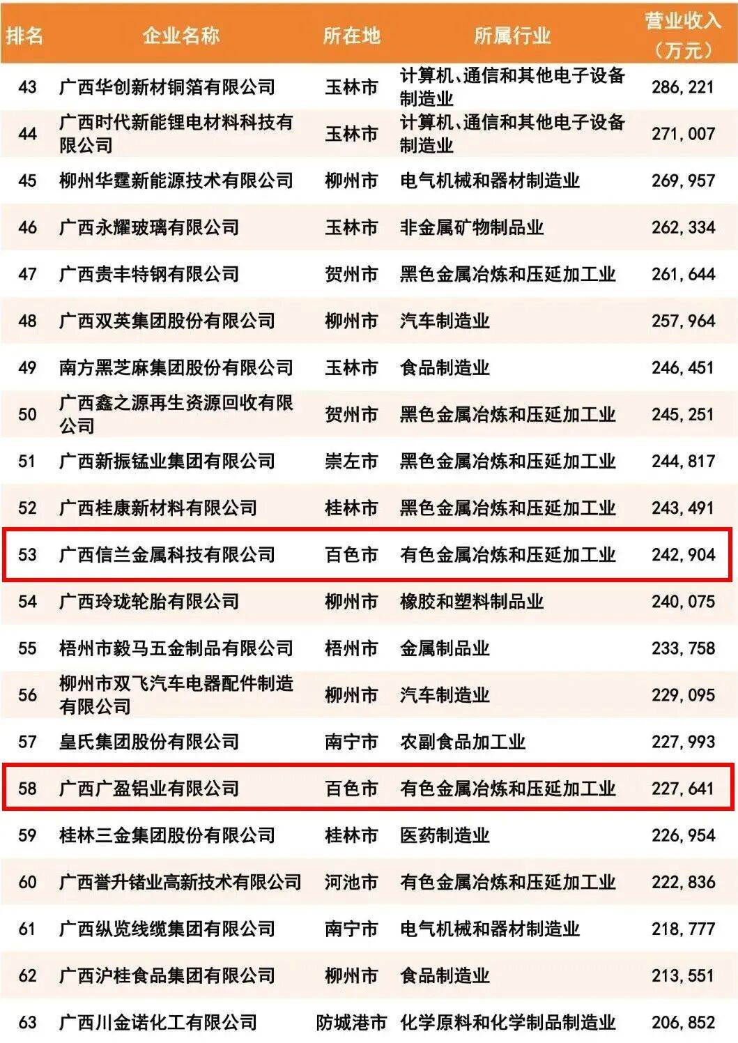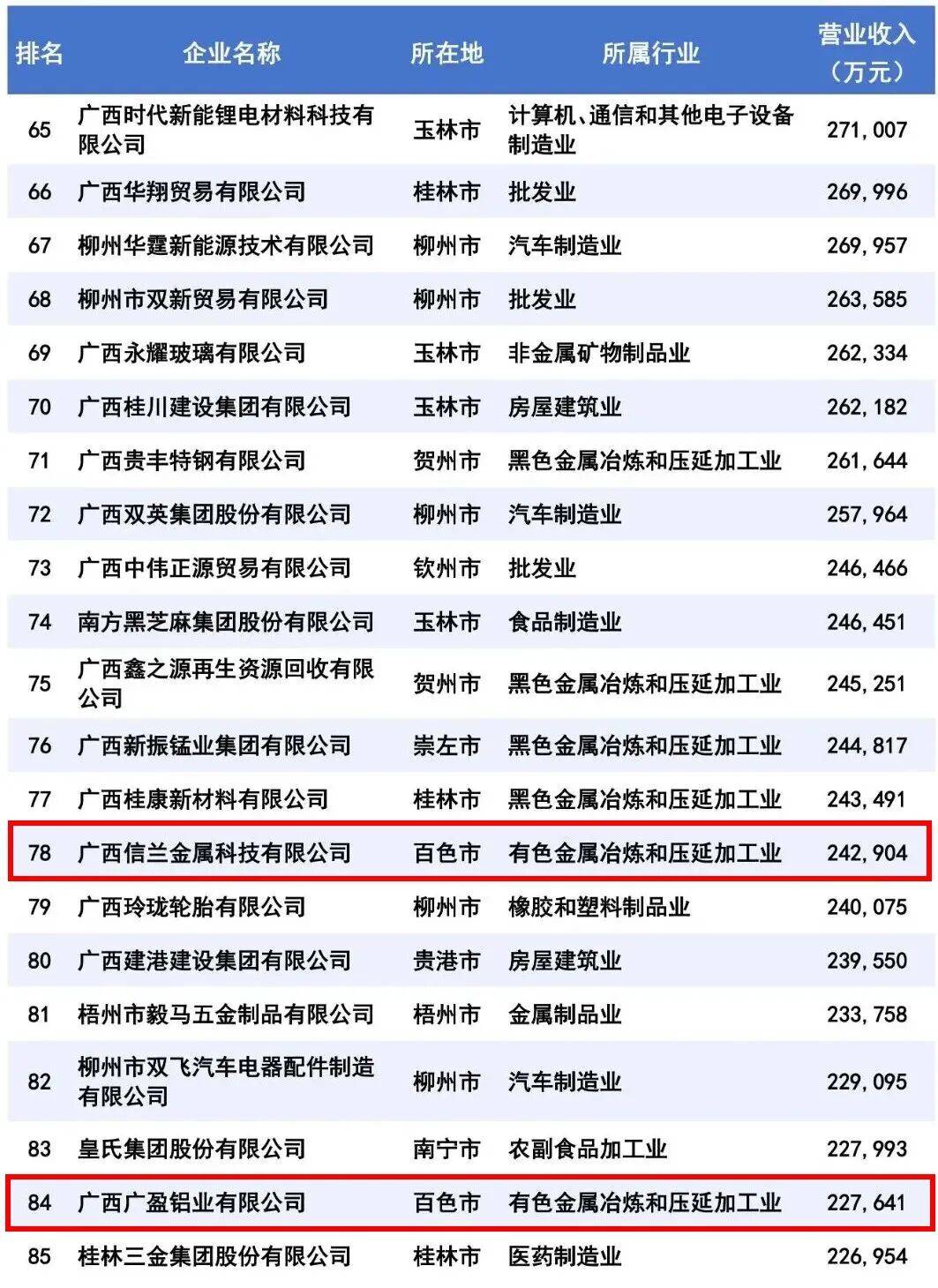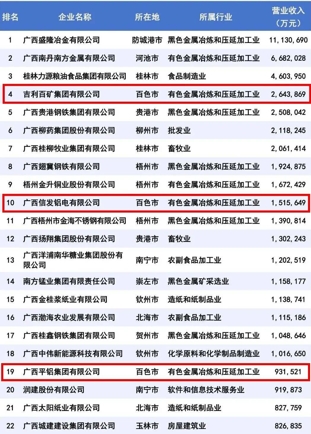 一、上榜2025广西民营企业百强的有12家,较2024年上榜数10家增加了2家。其中,吉利百矿集团有限公司、广西信发铝电有限公司入围2025广西民营企业前十强。